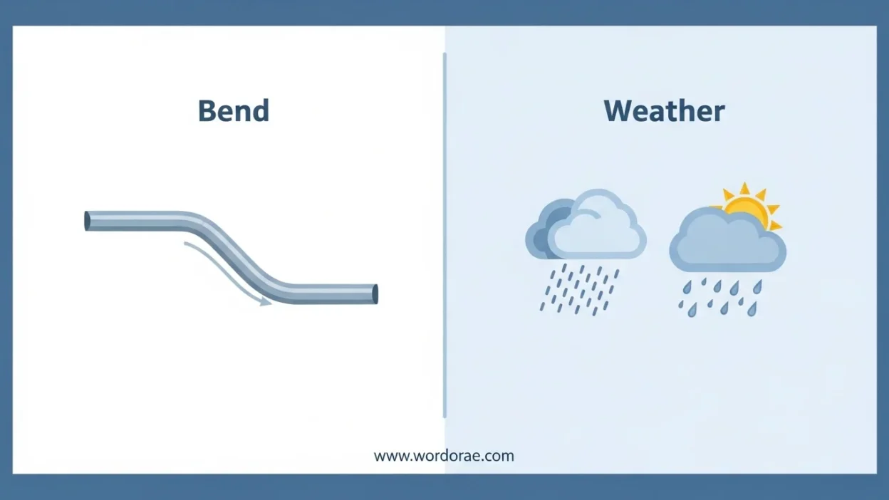 Quick answer first: Bend and weather are not interchangeable words. Bend means to curve, fold, change direction, or refers to a place (Bend, Oregon).